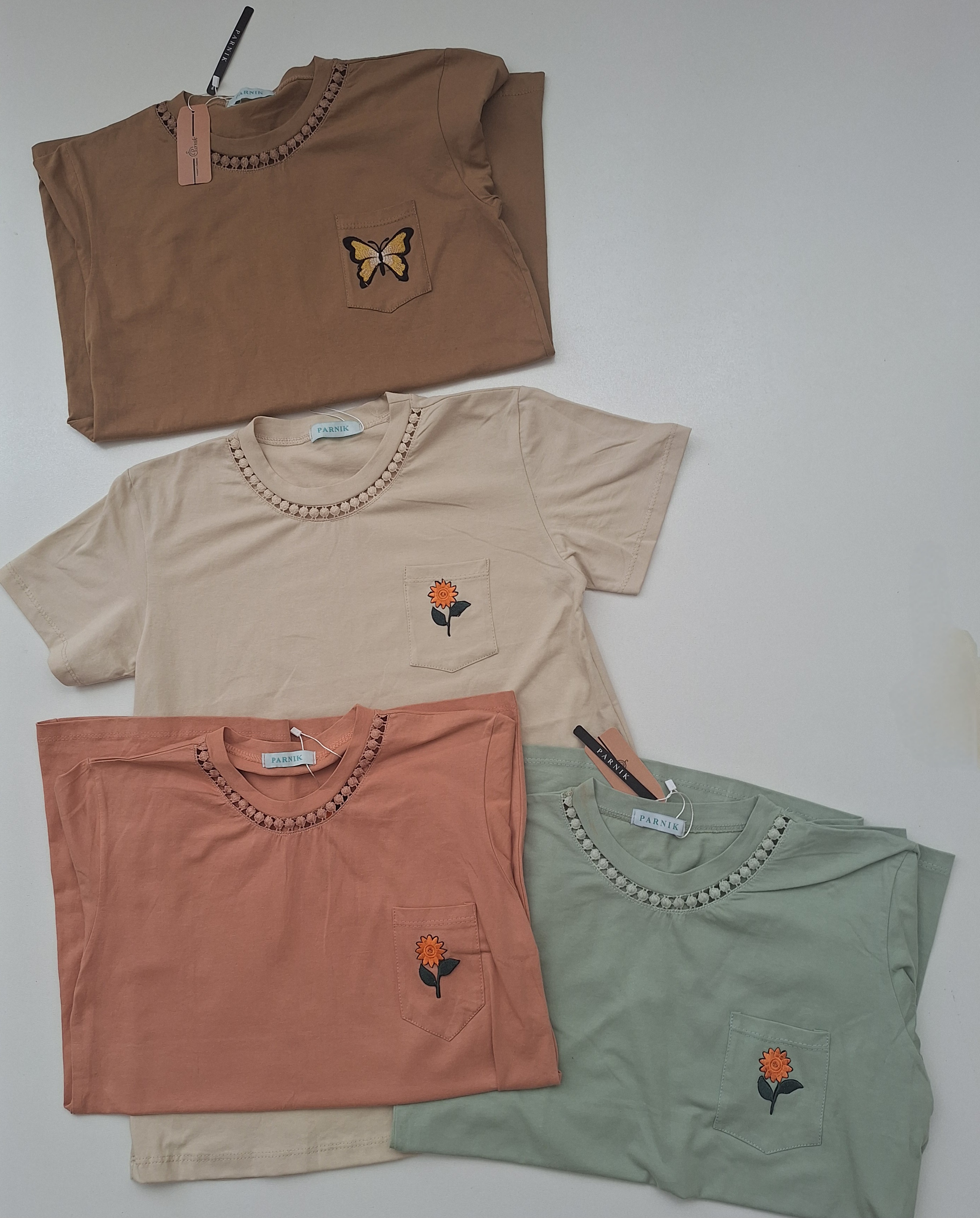 تیشرت زنانه و دخترانه گلدوزی شده نخ پنبه۳۲۱٬۰۰۰ تومان