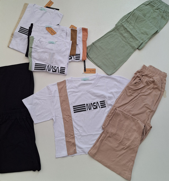 ست کراپ و شلوار بگ طرح دار نخ پنبه